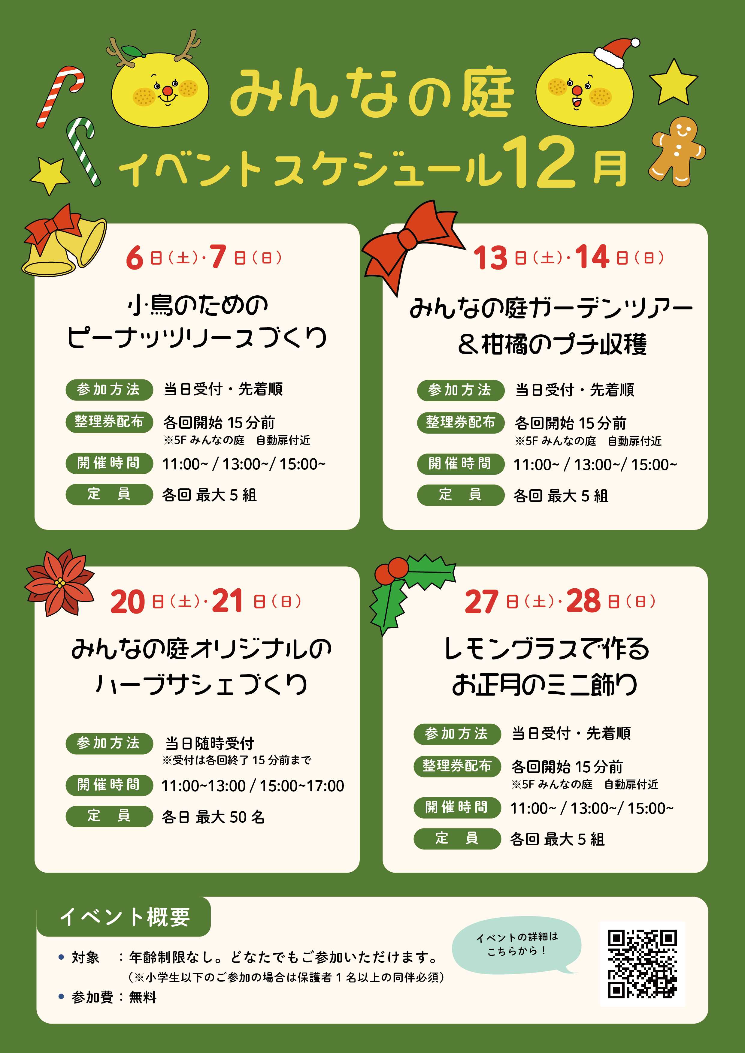 冬ならではのプログラムを、みんなの庭でお楽しみください。みなさまのご参加をお待ちしております!