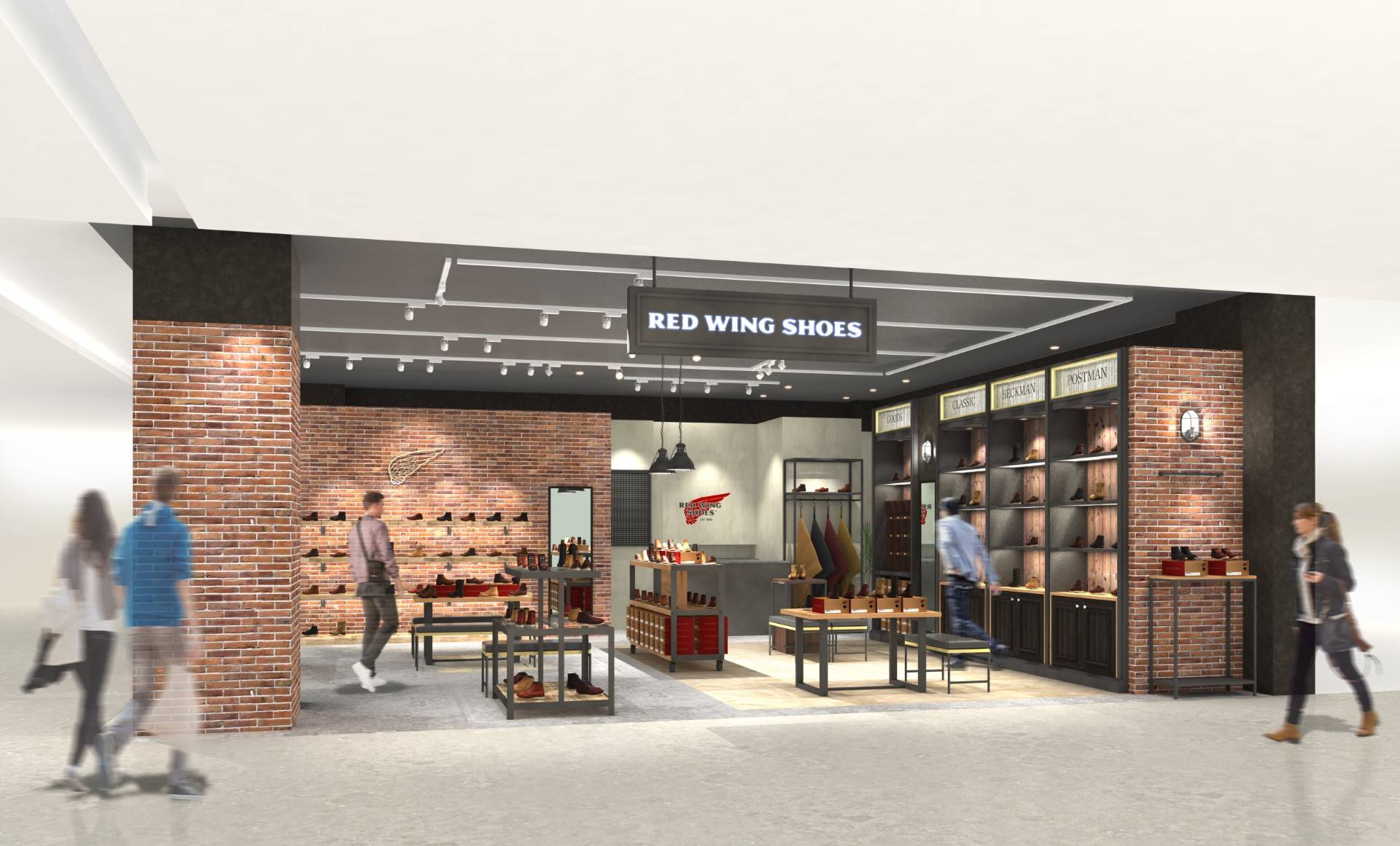 スペイン生まれのカンペールはデザイナー、マルティ・ギシェとのコラボレーションによるデザインビジュアルが壁全体に広がるインフォショップです。