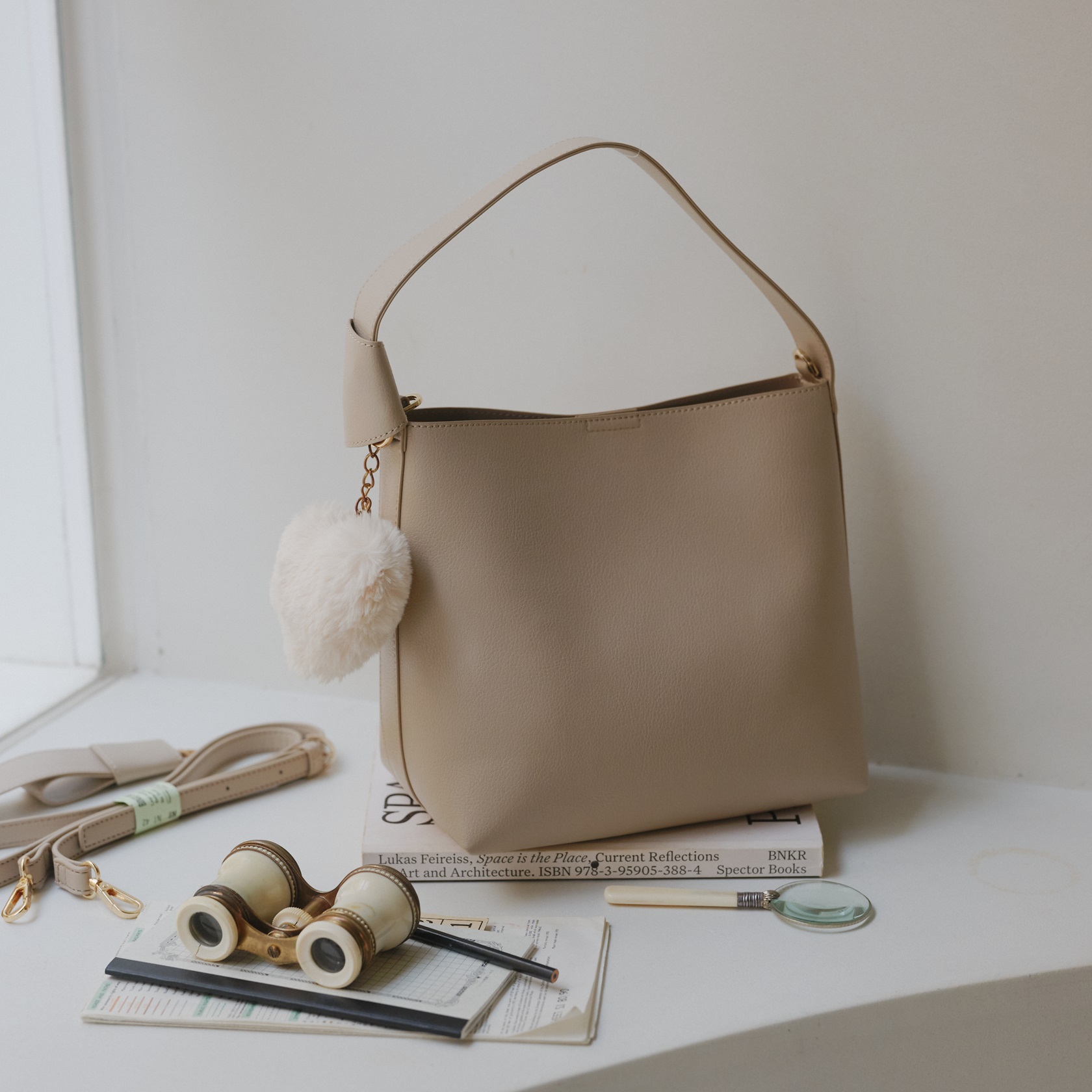 サイドにお好みのチャームを付けて、カスタムを楽しめる4WAY仕様のショルダーバック。無地のデザインは、世代を問わず使いやすく、日常からオフィスまで幅広く活躍します。見た目はミニマルながら、フォルムや持ち方を気分に合わせてアレンジできるのが魅力。内側には整理しやすいポケット付きで、マチもあるため収納力もしっかり。落ち着いたデザインの中に、さりげない遊び心を。毎日のコーディネートに、そっと寄り添うバックです。