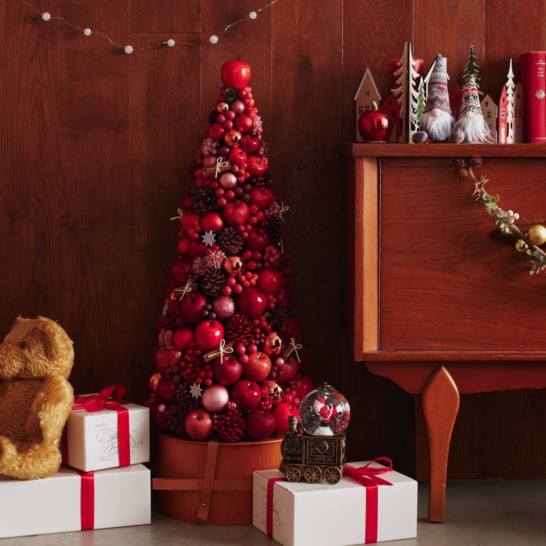 リンゴをモチーフにした、Afternoon Tea オリジナルのクリスマスツリーが今年も登場!置く場所に合わせて選べる5種類のサイズ。
