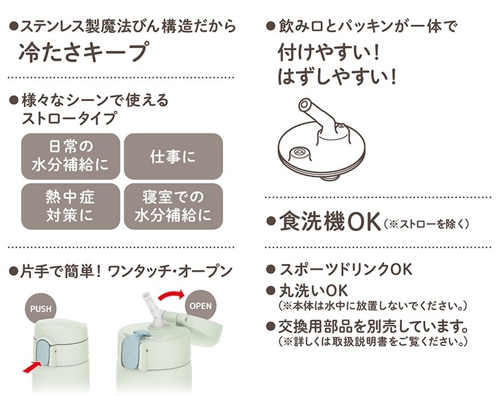 飲み口とパッキンが一体で付けはずしがしやすくなりました!