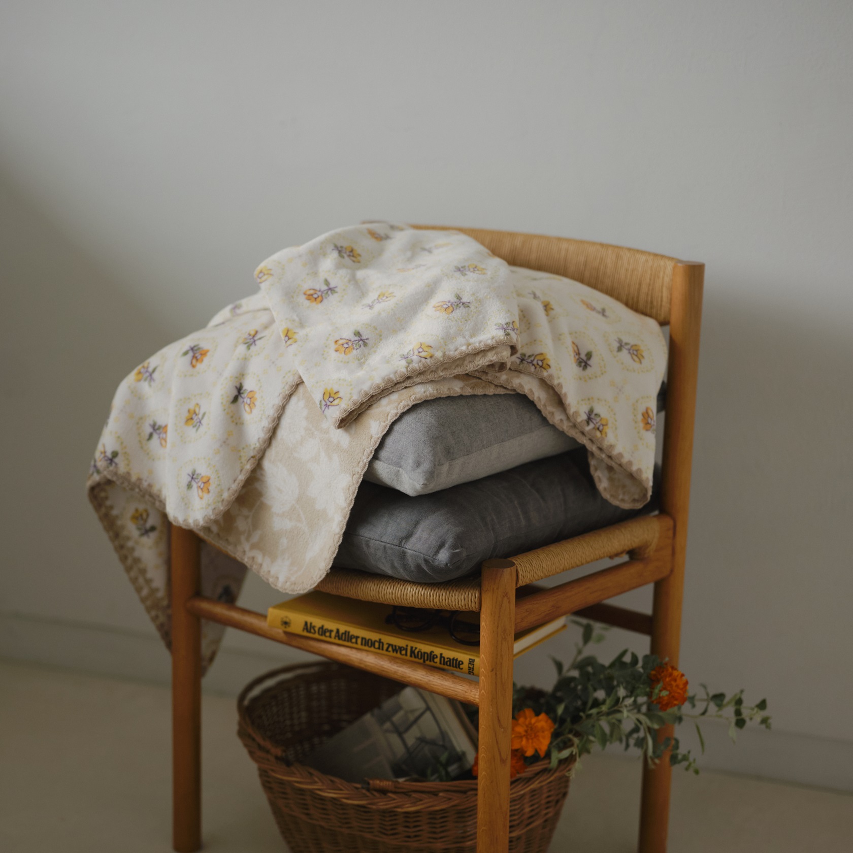 アフタヌーンティーならではのフラワー柄をあしらったブランケット。