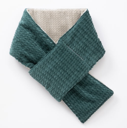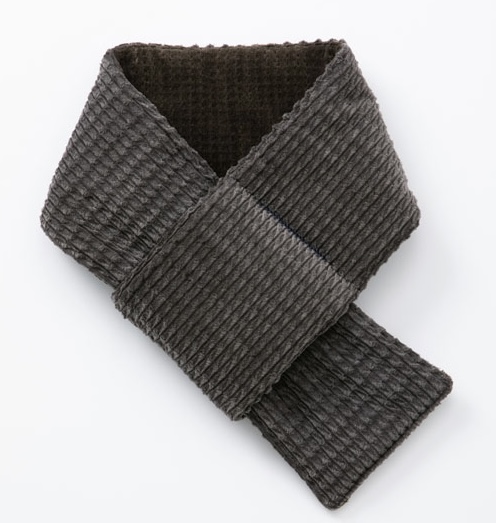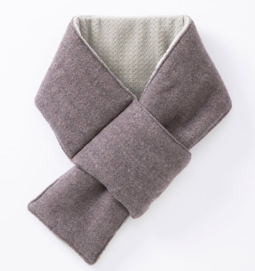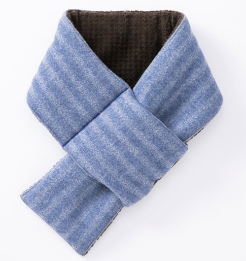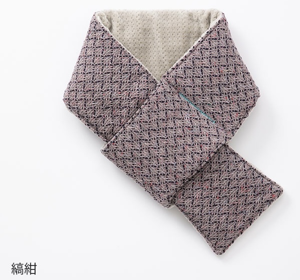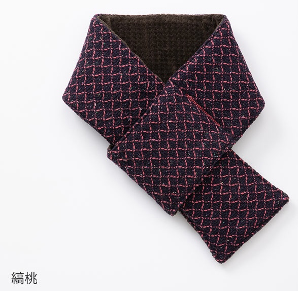 暖かく、どこか懐かしい風合いの仕上がりの、裏表で違う布の表情を楽しんでいただけるマフラーです。