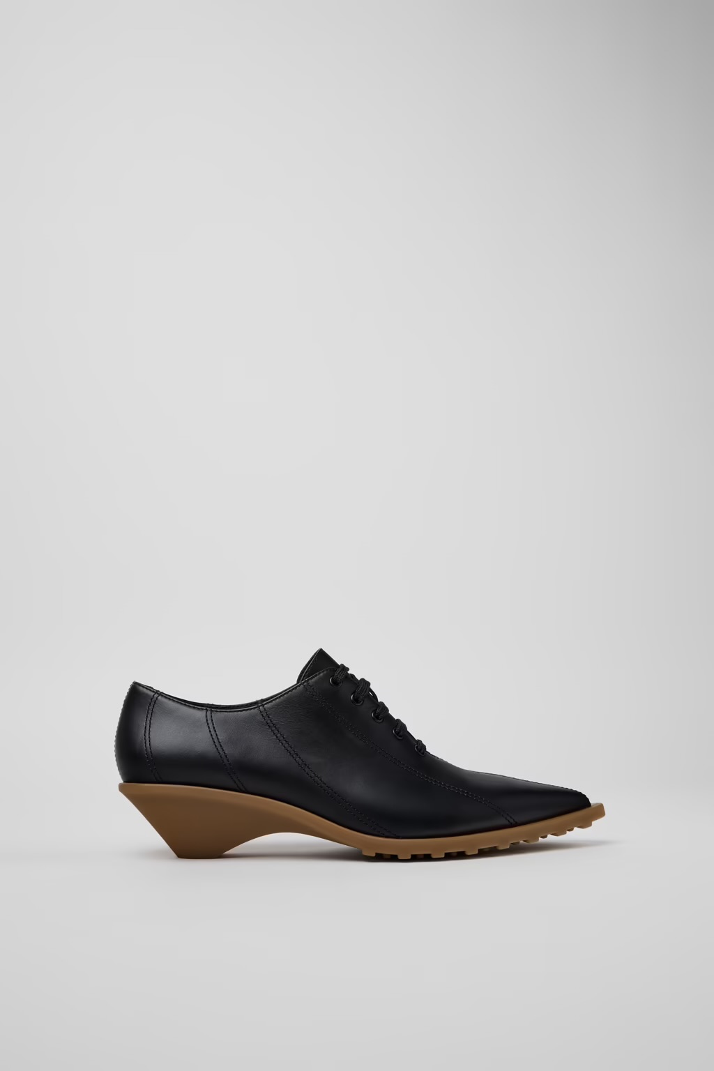 低いウェッジヒールと尖ったトゥを融合させ、洗練された女性的なシルエットを創り出します。