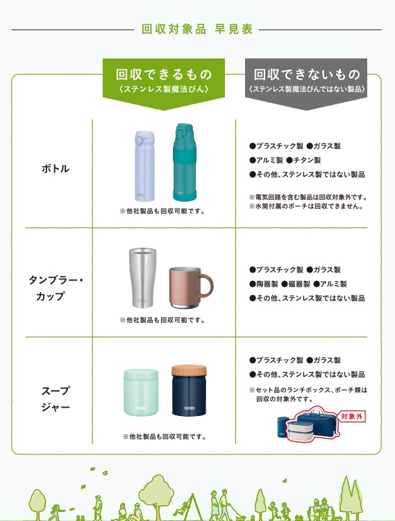 「ボトル」「タンブラー」「スープジャー」を回収いたします。