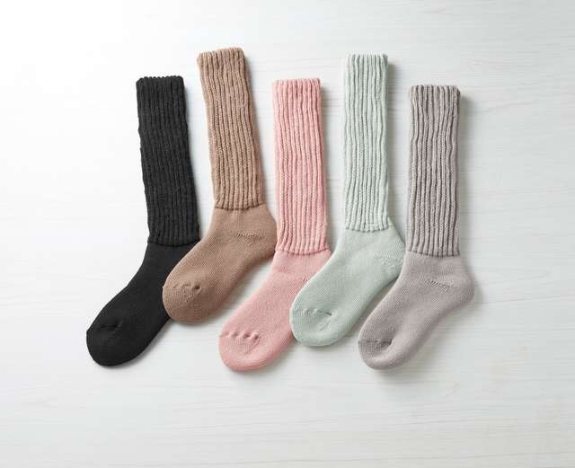 ロング丈のリラックスリブは、ふくらはぎ全体を包みこみ