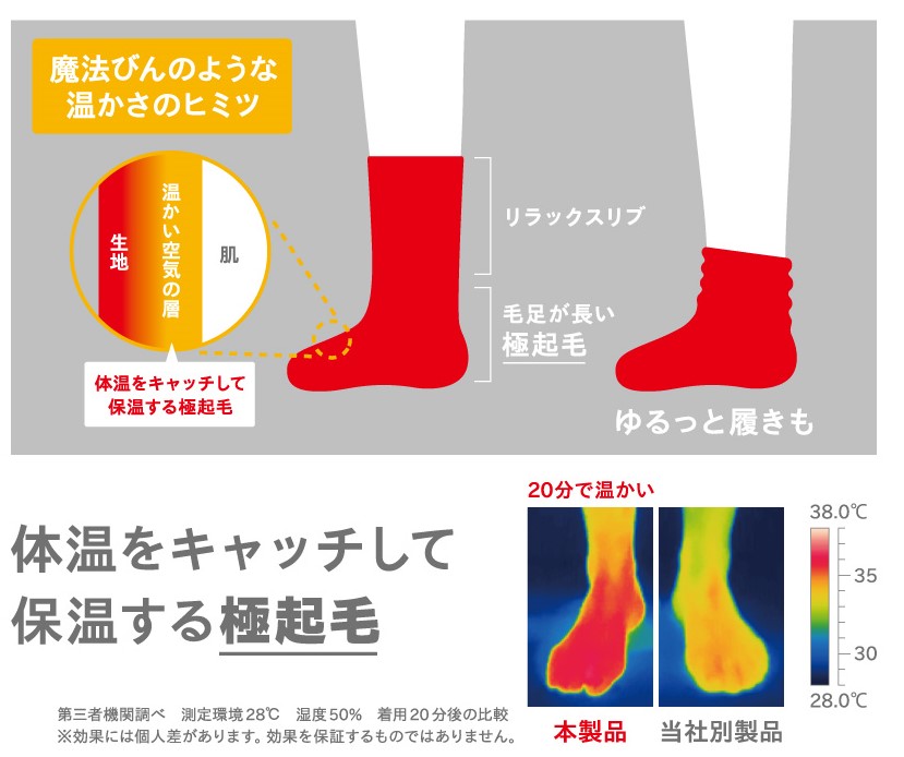 足首より上は、締め付け感の無いリラックスリブになっていて、