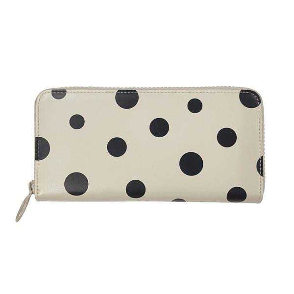 フラメンコの世界に魅せられ誕生したシューズコレクションと連動した財布は、ランダムに散りばめたポルカドットが軽やかで弾むような印象を演出しています。革と同色のビスロンファスナーが柄を引き立て、統一感のあるスマートな仕上がりになっています。